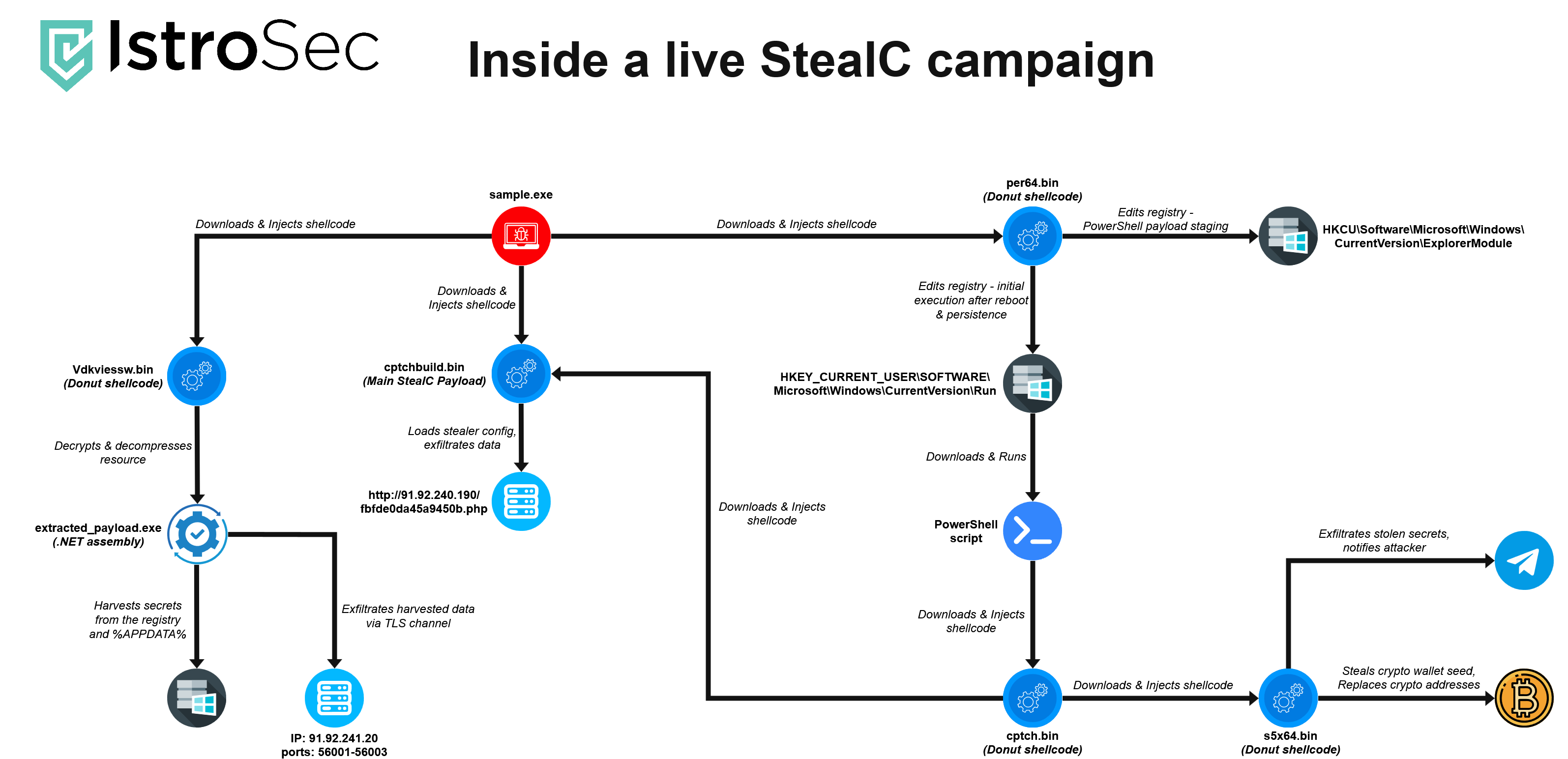 During routine threat monitoring, we identified an active StealC loader. At first glance, it appeared to be a typical dropper - a binary responsible for fetching and launching the final stealer payload. However, deeper analysis revealed a broader, multi-stage infection chain, with each stage advancing the chain and introducing additional layers of obfuscation, and staged payload delivery.