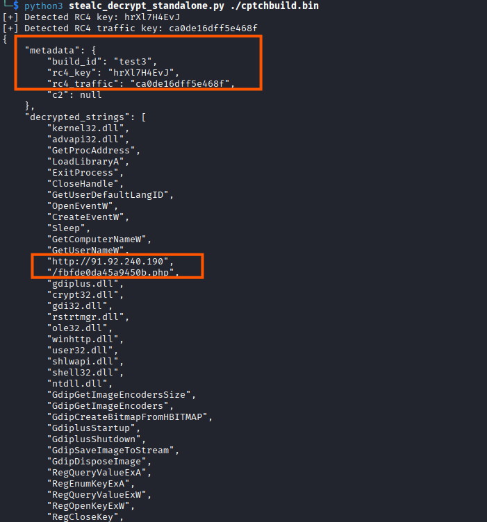 During analysis, we identified an existing open-source script capable of automatically extracting the full StealC static configuration, including encryption keys and all supported capabilities exposed by the binary. These capabilities are selectively activated at runtime based on the configuration received from the command-and-control server.