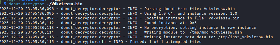 To recover the embedded payload, we used Volexity’s public donut_decryptor utility. The tool performs the following steps: